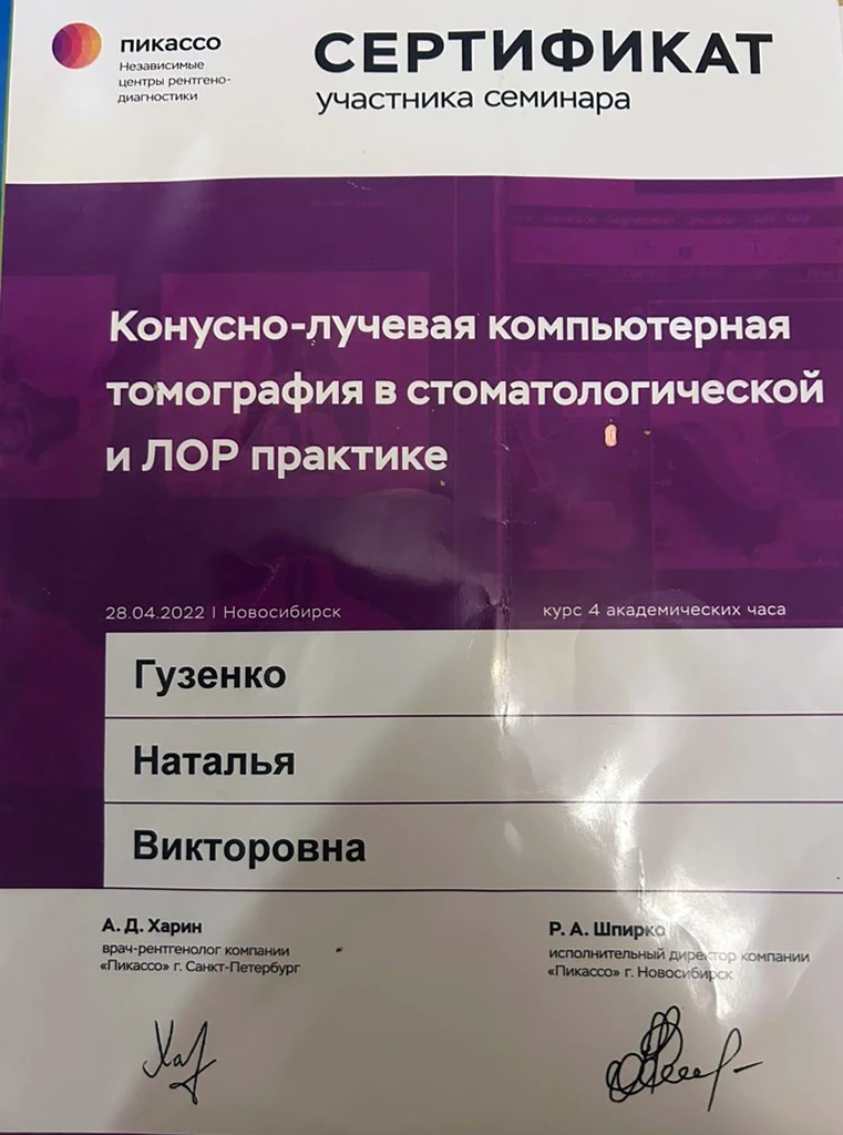 - 2017 - «Современные методы устранения дисколоритов зубов», Новосибирск